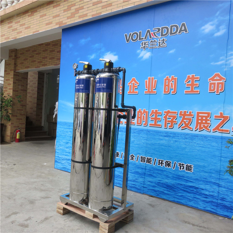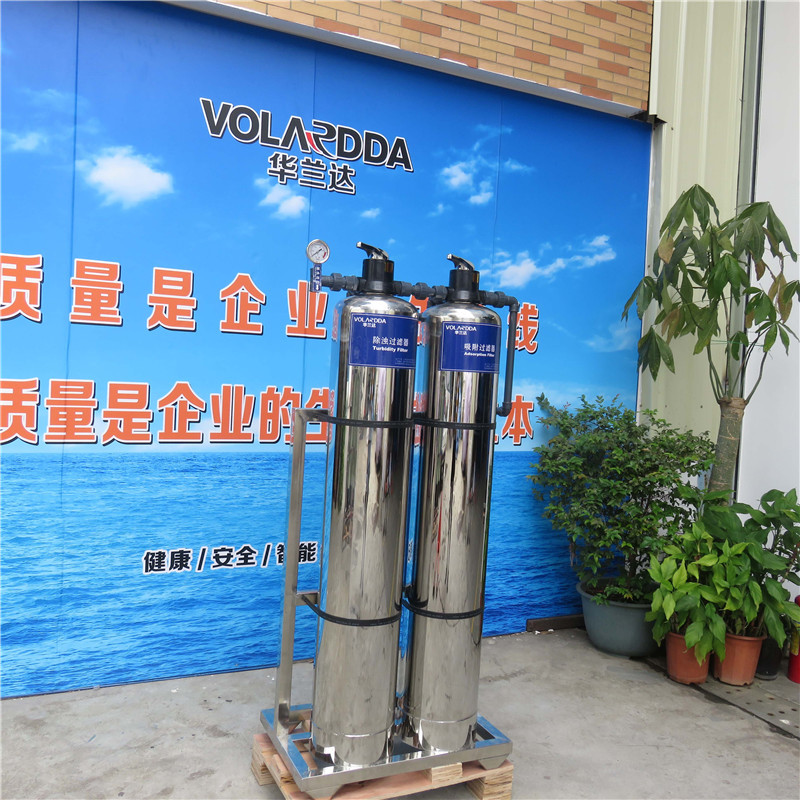 進水→石英砂過濾器→活性炭過濾器→精密過濾器→出水